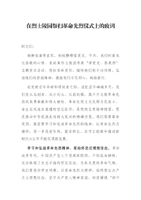 在烈士陵园祭扫革命先烈仪式上的致词.docx