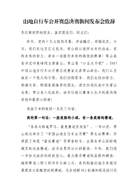 山地自行车公开赛总决赛新闻发布会致辞.docx