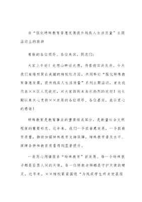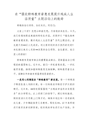 在“强化特殊教育普惠发展 提升残疾人生活质量”主题活动上的致辞.docx