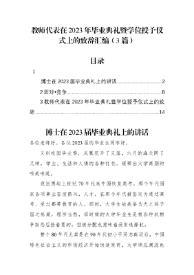 (3篇)教师代表在2023年毕业典礼暨学位授予仪式上的致辞汇编.docx