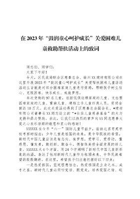 在2023年“鼓润童心呵护成长”关爱困难儿童救助帮扶活动上的致词.docx