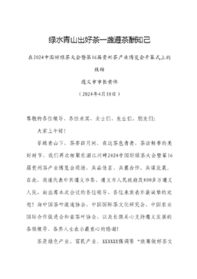 遵义市市长黄伟:在2024中国好绿茶大会暨第16届贵州茶产业博览会开幕式上的致辞.doc