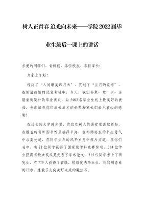 树人正青春 追光向未来——学院2022届毕业生最后一课上的讲话.docx