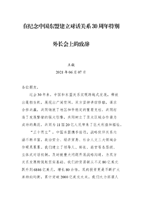 在纪念中国东盟建立对话关系30周年特别外长会上的致辞.docx