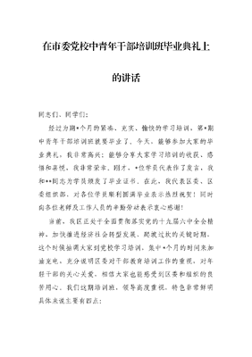 在市委党校中青年干部培训班毕业典礼上的讲话.docx