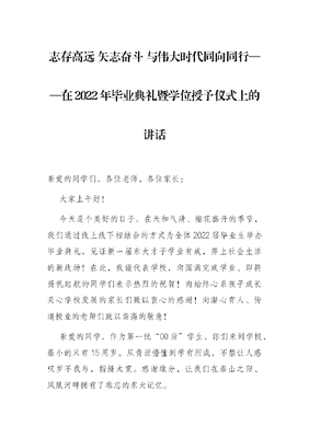 志存高远 矢志奋斗 与伟大时代同向同行——在2022年毕业典礼暨学位授予仪式上的讲话.docx