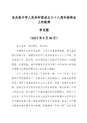 在庆祝中华人民共和国成立六十八周年招待会上的致辞.doc
