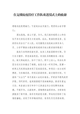 在支援抗疫医疗工作队欢送仪式上的致辞.docx