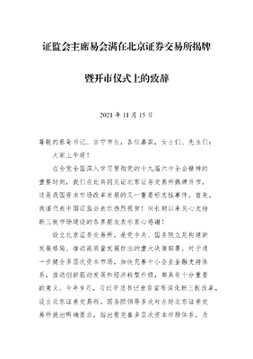 证监会主席易会满在北京证券交易所揭牌暨开市仪式上的致辞.docx