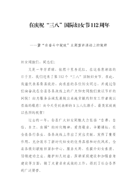 在庆祝“三八”国际妇女节112周年——暨“在奋斗中绽放”主题宣讲活动上的致辞.docx