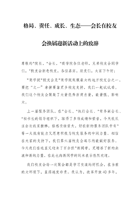 格局、责任、成长、生态——会长在校友会换届迎新活动上的致辞.docx