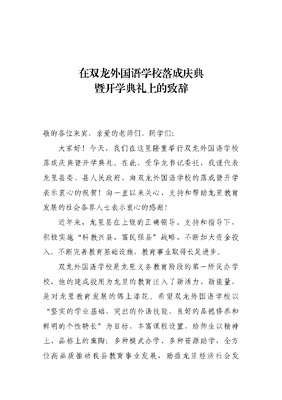在双龙外国语学校落成庆典暨开学典礼上的致辞.docx