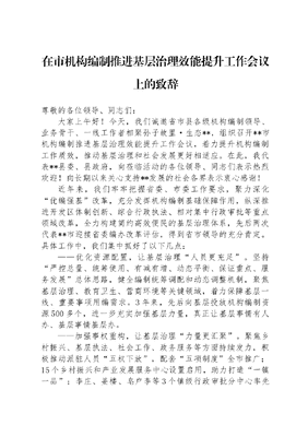 在市机构编制推进基层治理效能提升工作会议上的致辞.docx