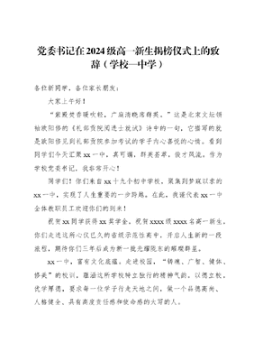 党委书记在2024级高一新生揭榜仪式上的致辞(学校—中学).docx