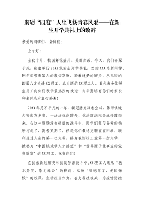 磨砺“四度”人生飞扬青春风采——在新生开学典礼上的致辞.docx