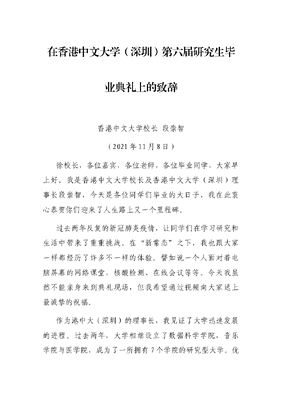 在香港中文大学(深圳)第六届研究生毕业典礼上的致辞.docx