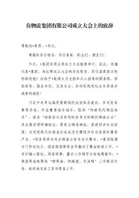在物流集团有限公司成立大会上的致辞.docx