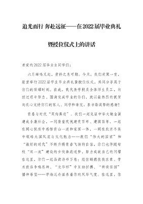 追光而行 奔赴远征——在2022届毕业典礼暨授位仪式上的讲话.docx