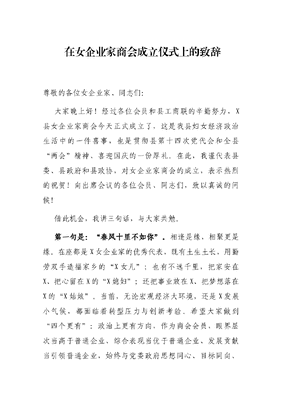 在女企业家商会成立仪式上的致辞.docx