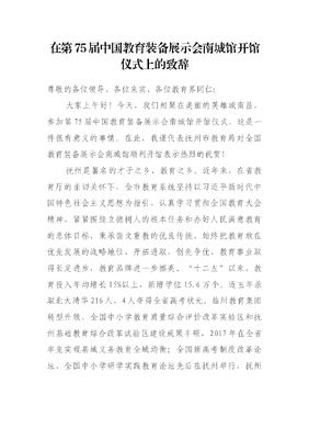吴建发局长在第75届中国教育装备展示会南城馆开馆仪式上的致辞.docx