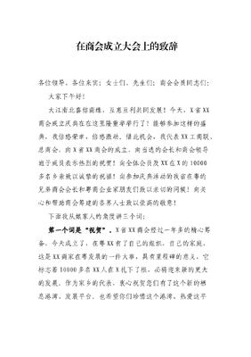 在商会成立大会上的致辞.docx