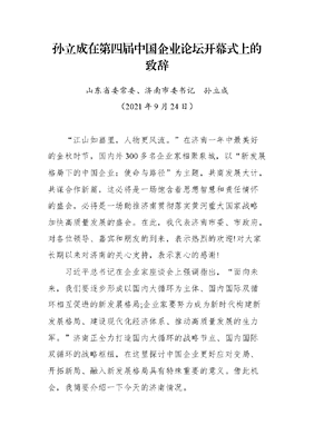 孙立成在第四届中国企业论坛开幕式上的致辞.docx