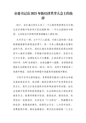 市委书记在2021年新经济共享大会上的致辞.docx