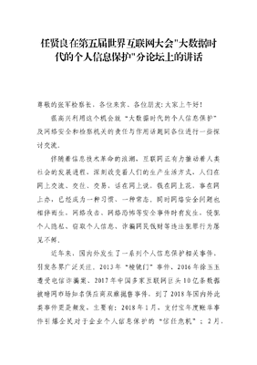 任贤良在第五届世界互联网大会大数据时代的个人信息保护分论坛上的讲话.docx