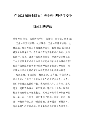 在2022届硕士研究生毕业典礼暨学位授予仪式上的讲话.docx