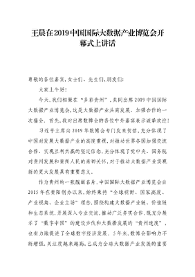 王晨在2019中国国际大数据产业博览会开幕式上讲话.docx