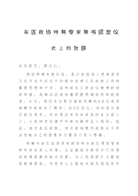 在区政协特聘专家聘书颁发仪式上的致辞.doc