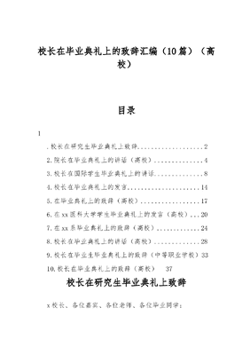(10篇)高校校长在毕业典礼上的致辞汇编.docx