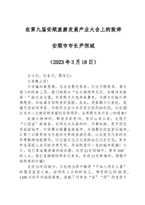 安顺市市长尹恒斌:在第九届安顺旅游发展产业大会上的致辞.docx