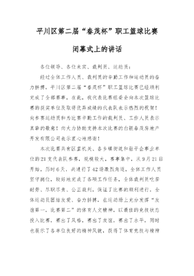 平川区第二届“春茂杯”职工篮球比赛闭幕式上的讲话.docx
