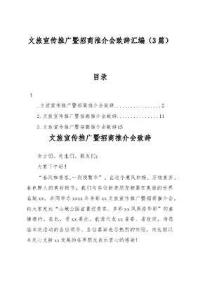 (3篇)文旅宣传推广暨招商推介会致辞汇编.docx