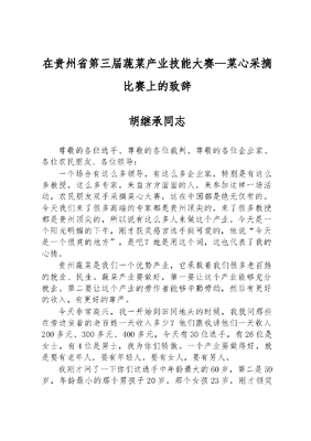 胡继承同志:在贵州省第三届蔬菜产业技能大赛—菜心采摘比赛上的致辞.docx