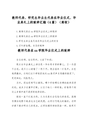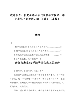 (4篇)教师代表、研究生毕业生代表在毕业仪式、毕业典礼上的致辞汇编(高校).docx