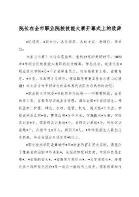 院长在全市职业院校技能大赛开幕式上的致辞.docx