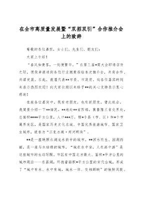 在全市高质量发展暨“双招双引”合作推介会上的致辞.docx