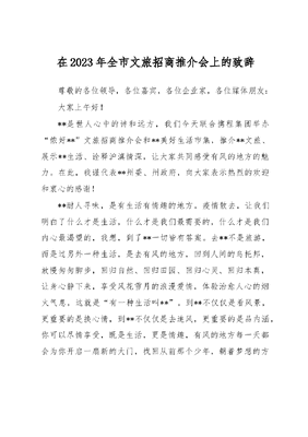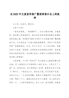 在2023年文旅宣传推广暨招商推介会上的致辞.docx