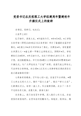 党委书记在庆祝理工大学组建周年暨建校年升旗仪式上的致辞.docx