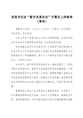 党委书记在“数字发展论坛”开幕式上的致辞(高校).docx