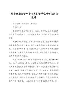 校友代表在学生毕业典礼暨学位授予仪式上致辞.docx