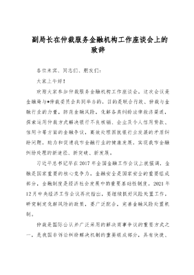 副局长在仲裁服务金融机构工作座谈会上的致辞.docx