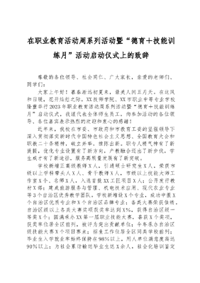 在职业教育活动周系列活动暨“德育 技能训练月”活动启动仪式上的致辞.docx