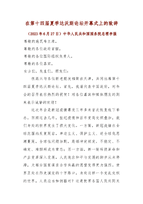 在第十四届夏季达沃斯论坛开幕式上的致辞.docx