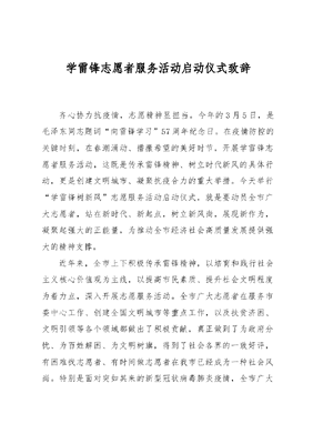 学雷锋志愿者服务活动启动仪式致辞.docx