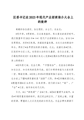 区委书记在2023年现代产业招商推介大会上的致辞.docx
