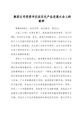 集团公司党委书记在石化产业发展大会上的致辞.docx