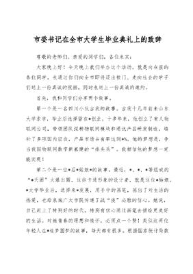 市委书记在全市大学生毕业典礼上的致辞.docx